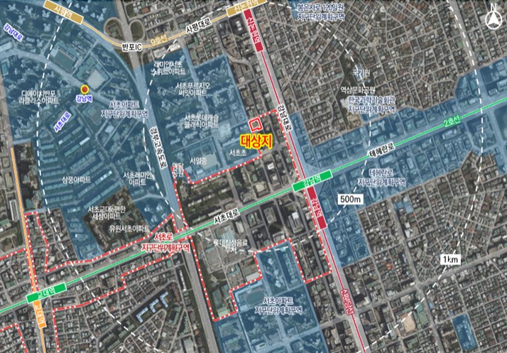 서울시는 2026년 4월 7일 제1차 도시·건축공동위원회 수권분과위원회를 개최하여 ‘서초로 지구단위계획구역(서초동 1307번지 일원) 기반시설 등 충분여부 검토 심의(안)’에 대해 ‘조건부가결’했다고 밝혔다. 이번 안건은 지난해 5월 변경된 서초로 지구단위계획 용적률 인센티브에 따라, 일반상업지역에서 용적률 1,000%를 초과하는 건축계획(안)에 대해 기반시설 등 충분여부를 심의한 사례다. 심의에서는 도로, 하수도 등 총 8개 기반시설의 충분여부를 검토했다. 그 결과, 주차장·상수도·하수도·전기·가스 등 5개 시설은 충분한 것으로 판단됐으며, 도로와 공원·녹지 등은 추가 개선이 필요한 것으로 검토됐다. 이에 따라 향후 절차 이행 과정에서 확충방안 및 공개공지 계획을 보완·이행하는 조건으로 ‘조건부가결’했다. 대상지는 현재 유휴지 주차장으로 활용되고 있으며, 지하철 2호선과 신분당선 강남역 인근에 위치하고 있으며, 대상지 주변으로 업무시설 및 상업시설이 밀집해 있다. 건축계획(안)에 따르면, 대상지에는 지상 20층, 지하 8층 규모의 업무시설 및 근린생활시설이 건립될 예정이다. 저층부(지하 1층~2층)에는 근린생활시설과 공개공지 등 가로 활성화를 위한 용도가 배치되며, 3층 이상은 업무공간이 조성된다. 이를 통해 서초동 상업지역 내 업무기능 활성화에 기여할 것으로 기대된다. 또한, 대상지 개발 시 저층부에 가로활성화용도를 도입하고 공개공지를 확보해 시민 편의성을 개선할 계획이다. 특히 공개공지는 30% 이상을 녹화공간으로 조성하여 지역 내 부족한 공원녹지 기능을 확충하며, 신재생에너지 도입, 제로에너지 건축물 계획 등 친환경 요소도 적용하여 지속가능한 복합시설을 구현할 예정이다. 안대희 서울시 도시공간본부장은 “이번 사업을 계기로 서초로 지구단위계획구역이 도심 업무중심지로서 역할을 강화하는 데 기여하기를 기대한다”고 말했다.