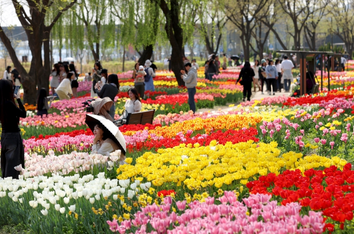서울 성동구는 중랑천 산책로 구간에 튤립 등 봄꽃이 만개하고 ‘중랑천 피크닉 정원’도 새롭게 단장하면서 주민들의 발길이 이어지고 있다고 밝혔다.지난해 11월 성동구가 2.2km에 이르는 중랑천 산책로(용비교~살곶이) 구간에 식재한 튤립과 수선화 등 20종 약 15만 구의 구근이 추운 겨울을 이겨내고 3월 말부터 형형색색의 꽃을 피우기 시작했다. 특히 용비교 하부 일대에는 약 5만 본의 꽃이 어우러진 튤립 명소 ‘용비휴식정원’이 조성되어 있다. 드넓게 펼쳐진 꽃밭과 수변 경관이 어우러져 많은 방문객이 찾는 사진 명소로도 알려진 곳이다.용비휴식정원을 지나 물길을 따라 이어지는 봄꽃 가득한 수변 산책로를 걷다 보면, 성동교 인근 1,800㎡ 규모의 ‘중랑천 피크닉 정원’을 만날 수 있다. ‘피크닉 정원’은 매해 다채로운 꽃과 식물이 어우러져 색다른 정취를 선사하며, 넓은 잔디와 다양한 조형물이 어우러져 누구나 편안하게 머물며 휴식을 즐길 수 있는 공간이다.올해 피크닉 정원은 ‘중랑천의 사계절 기록 보관소’를 주제로 공중전화 등 감성적인 포토존과 조형물을 설치해 새롭게 단장했으며, 사계절 볼거리를 담은 특화 정원으로 조성해 나갈 예정이다. 또한 파라솔 벤치와 디자인 벤치 등 휴식 시설을 갖춰 가족, 친구, 이웃 등 방문객들이 힐링 경관을 만끽하며 여유로운 시간을 보낼 수 있도록 했다.중랑천 꽃길은 봄에 그치지 않고 연중 이어진다. 여름과 가을에는 백일홍과 코스모스가 차례로 개화하며, 피크닉 정원 또한 계절감 있는 조형물과 초화류를 활용해 지속적인 볼거리를 제공할 계획이다. 구 관계자는 “중랑천을 따라 이어지는 꽃길과 정원이 계절마다 다른 매력을 선사하며 주민들이 일상에서 편안하게 쉬고 즐길 수 있는 공간으로 자리 잡고 있다”며 “앞으로도 사계절 내내 다양한 볼거리와 휴식 공간을 제공할 수 있도록 하천변 꽃길 조성에 더욱 힘쓰겠다”고 말했다.