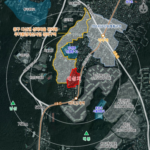 남산 숲세권이자 6호선 버티고개역 인근에 위치한 신당9구역에 최고 15층, 500세대 이상 규모의 공동주택이 들어설 전망이다. 서울 중구는 지난해 11월 서울시에 제출한 신당9구역 주택재개발사업 정비계획 변경안이 16일 서울특별시 고시로 최종 확정됐다고 밝혔다.신당9구역 재개발 사업지는 신당동 432-1008번지 일대(구역 면적 2만73㎡)다. 이번 변경은 남산고도제한 완화를 반영해 사업성이 대폭 개선됐다.당초 이곳에는 공동주택 등 건물 8개동, 315세대와 부대시설 건립이 계획돼 있었지만, 낮은 사업성으로 시공사 선정이 네 차례 유찰되는 등 추진에 난항을 겪어 왔다. 이번 계획 변경으로 최고 높이는 기존 7층(28m)에서 15층(45m)으로, 상한 용적률은 182%에서 250%로 상향됐다. 이에 따라 세대수도 기존 315세대에서 약 504세대로 늘어났다. 아울러 지역주민이 함께 이용할 수 있는 공영주차장도 조성될 예정으로, 인근 지역 주차난 해소에도 도움이 될 전망이다.구는 신당9구역에‘정비사업 내편즈’ 전문가 5명을 원팀(One-Team)으로 꾸려 지원한다. 감정평가, 건축설계, 도시계획, 공사비·원가관리, 시공 등 분야별 전문가가 자문을 통해 사업의 원활한 추진을 돕는다. 앞서 중구는 정비사업 단계별 맞춤 자문을 지원해 줄 전문가 49인을‘정비사업 내편즈’로 위촉한 바 있다.이와 함께 구는 용도지역 상향을 통해 해당 구역의 개발 밀도를 높이는 등 주거 여건 개선 방안을 지속적으로 검토해 나갈 방침이다. 신당9구역은 앞으로 시공자 선정 단계에 들어갈 예정이다.구 관계자는 “신당9구역 재개발 사업이 속도를 내며 원활히 추진될 수 있도록 주민들과의 소통을 바탕으로 필요한 지원을 적극 이어가겠다”고 말했다.