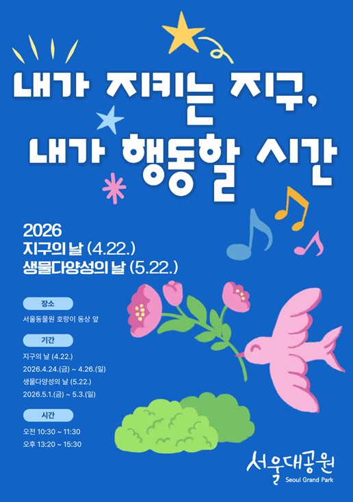 서울대공원 서울동물원은 ‘지구의 날(4월 22일)’과 ‘생물다양성의 날(5월 22일)’을 기념하여, 시민들이 환경보전의 가치를 직접 체험하고 배울 수 있는 특별 생태교육 행사를 개최한다고 밝혔다. 이번 행사는 봄철 나들이객이 집중되는 시기에 맞춰 4월과 5월 두 차례에 걸쳐 총 6일간 진행된다. ▲지구의 날 행사는 4월 24일부터 26일(일)까지, ▲생물다양성의 날 행사는 5월 1일부터 3일까지 각각 3일간, 서울동물원 정문 호랑이상 앞 광장에서 열린다. 이번 행사에서 ‘내가 지키는 지구, 내가 행동할 시간’(지구의 날)과 ‘우리 땅으로 떠나는 생물다양성 여행’(생물다양성의 날)을 슬로건으로 내걸고 4개의 전문 교육 부스를 운영한다. 각 부스에서는 동물해설사가 국내외 멸종위기 동물의 현황을 소개하고, 국가와 지자체가 추진 중인 종보전 노력 사례 및 시민이 실천할 수 있는 환경보전 행동 교육 등을 중심으로 시민들에게 알기 쉽게 전달할 예정이다. 특히 이번 교육은 동물의 생태적 특성뿐만 아니라 실제 보전지역을 연계한 스토리텔링 방식을 도입하여 시민들의 이해를 돕는다. 생물다양성의 날 행사에서는 금개구리(경기도), 남방큰돌고래(제주도), 점박이물범(백령도), 저어새(남·서해안 습지), 황새(충남 예산·서산) 등 국내 주요 보전지역의 사례를 구체적으로 소개할 예정이다. 또한, 관람객의 흥미를 유도하기 위한 참여형 콘텐츠도 풍성하게 준비됐다. 어린이와 가족 방문객의 흥미를 유도하기 위해 ▲환경·동물 게임코너 ▲밀짚모자 및 손부채 꾸미기 ▲실천 행동을 약속하는 사진 촬영(포토부스) 등 참여형 콘텐츠를 대폭 강화하여 ‘즐기면서 배우는’ 환경교육 플랫폼을 구현했다. 참여 시민들은 지구의 날에는 ‘서울대공원 여권’ 형태의 미션지를, 생물다양성의 날에는 ‘기차 티켓’ 모양의 미션지를 수령하여 스탬프를 획득하면서 교육에 참여하게 된다. 박진순 서울대공원장은 “이번 행사는 단순한 기념행사를 넘어 시민들이 생물다양성 보전의 필요성을 체감하고 행동으로 옮기는 계기가 될 것”이라며, “앞으로도 서울대공원이 생태계 보호 인식 확산을 위한 거점 역할을 할 수 있도록 다양한 프로그램을 지속 확대하겠다”고 말했다.